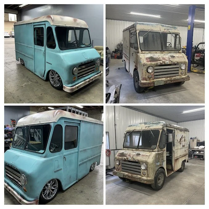 The 1960 IH Metro Mite is a stunning custom build that blends classic design with modern performance enhancements. This unique vehicle features a custom steel tube chassis, providing enhanced rigidity and lightweight construction for improved handling. Its suspension and drivetrain are sourced from a 1988 Corvette, offering a powerful and responsive driving experience that modernizes the vintage design.